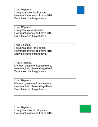 Primary Resources: Maths: Solving Problems: Money Problems Magnificent Maths Shop (James Maloney) Money & Measure Problems (Stephen Norwood) PDF. Money & Real Life Problems (Christine Sparke) Sheet 1 PDF 2 PDF. Addition of Money (Kevin Kerr) PDF. Money Problems (David Guest) PDF. At the Toy Shop (Jane Whalley) PDF. Fireworks & Money (Maeve Hird) Sheet 1 DOC - Sheet 2 DOC.