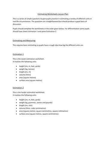 Estimation Worksheets - Math Worksheets Center Estimation Worksheets Listed By Skill Development: Estimating the Half Way Point Estimate on a Number Line Estimate the Number of Objects Estimating Length Visually Estimate Sums and Differences Estimate Sums and Differences Estimate Large Sums and Differences Estimating Weight and Volume Rounding Numbers To Tens